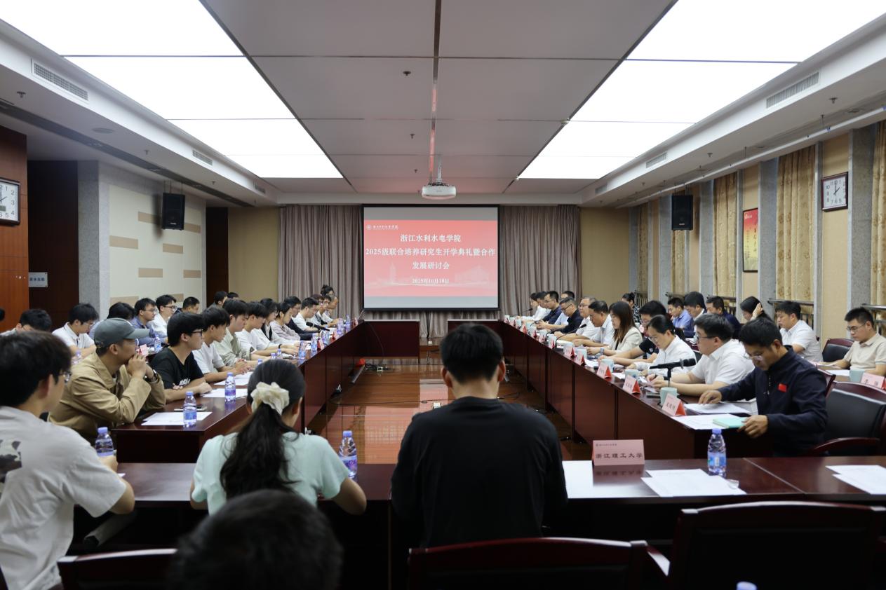 10月18日,浙江水院2025级联合培养研究生开学典礼暨合作发展研讨会在钱塘校区举行。副校长沈自力致辞。2025级全体联合培养研究生、2024级研究生代表,三所联培高校的研究生院领导,学校学科建设与研究生管理处负责人,以及各校相关学院负责人、导师代表、科研秘书等参加。