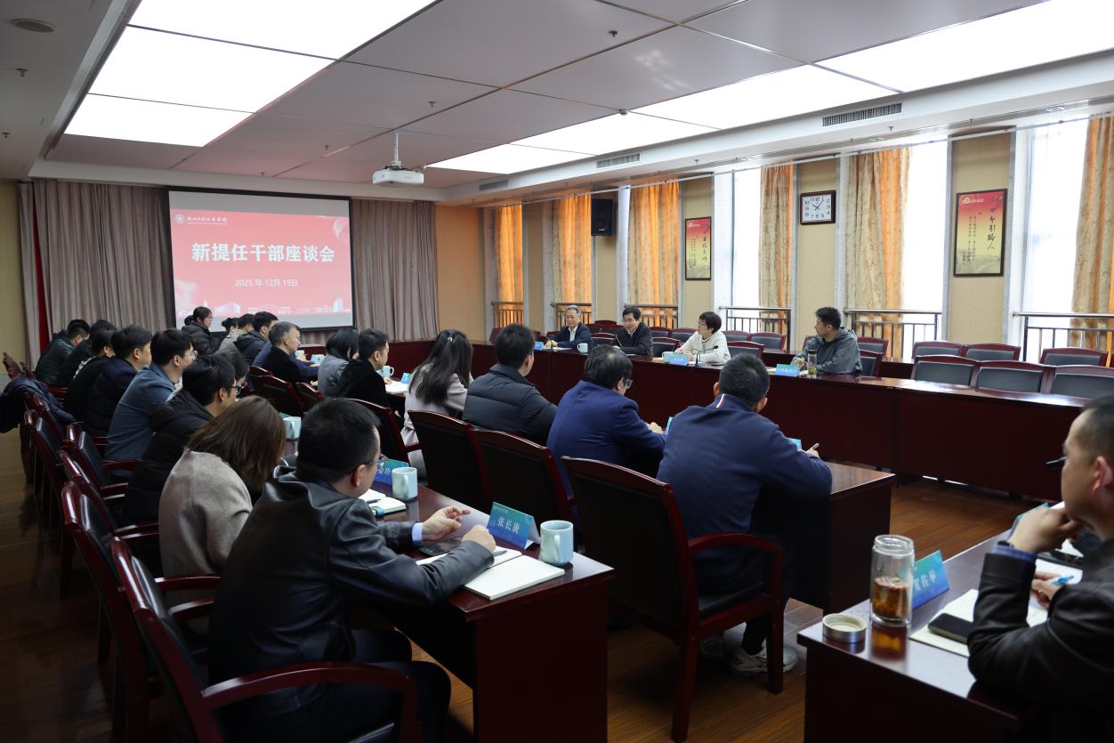 12月19日上午,学校召开2025年新提任中层干部座谈会。校党委书记钱天国出席会议并讲话,党委副书记吴小英主持会议。