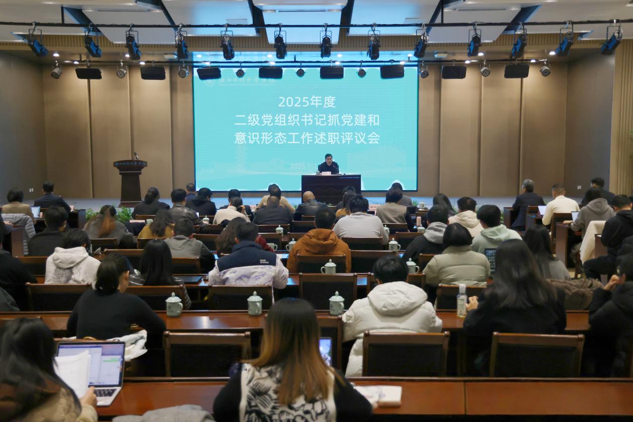 12月30日,学校2025年度二级党组织书记抓基层党建和意识形态工作述职评议会在南浔校区召开。校党委书记钱天国主持会议并作点评讲话。10位二级党组织书记现场汇报履职情况,5个二级党组织提交书面述职报告。